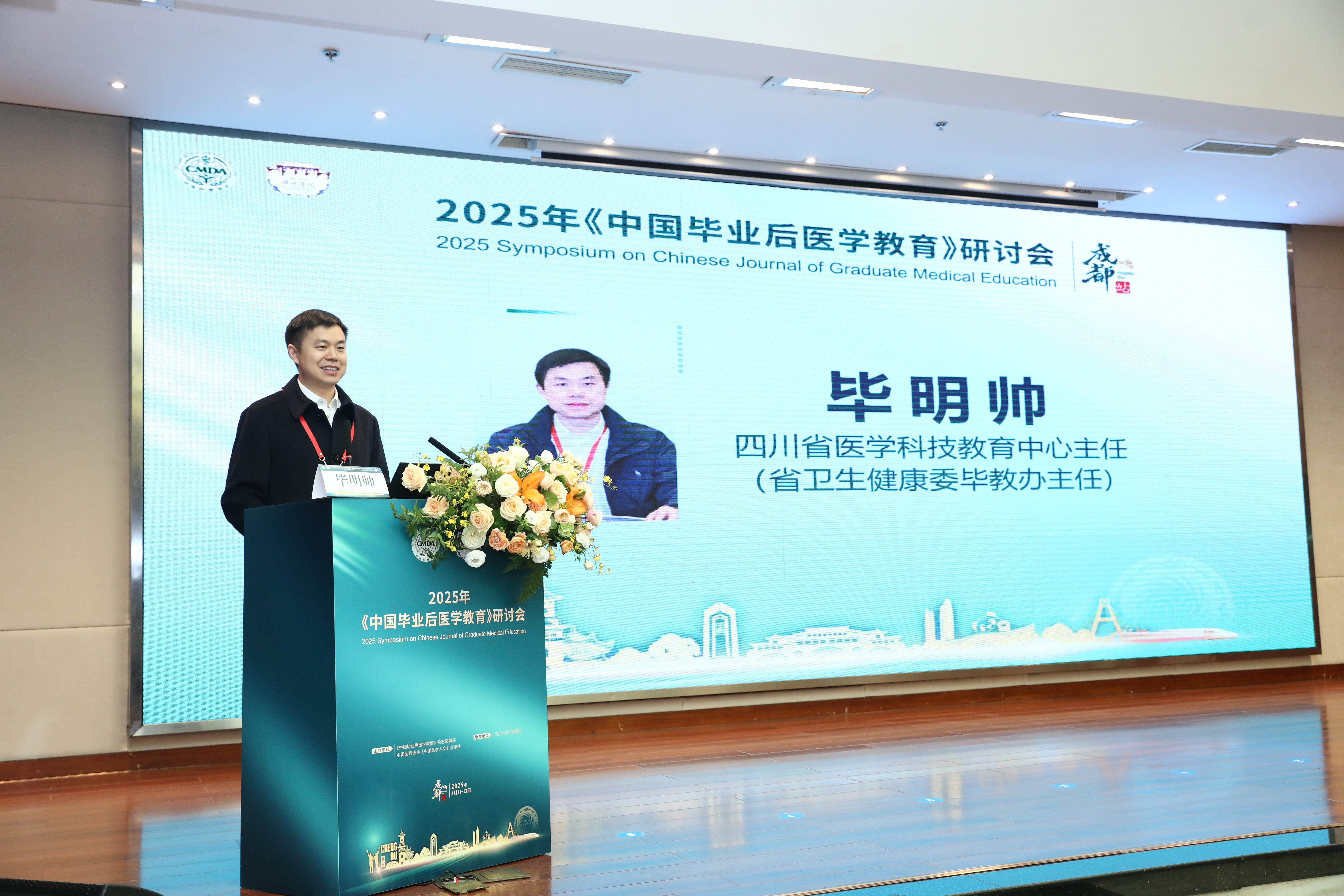 中国医师协会史盛丰副会长、四川大学华西临床医学院(华西医院)罗凤鸣院长、四川省医学科技教育中心(省卫生健康委毕教办)毕明帅主任、《中国毕业后医学教育》杂志执行总编辑张萍副院长先后致辞。