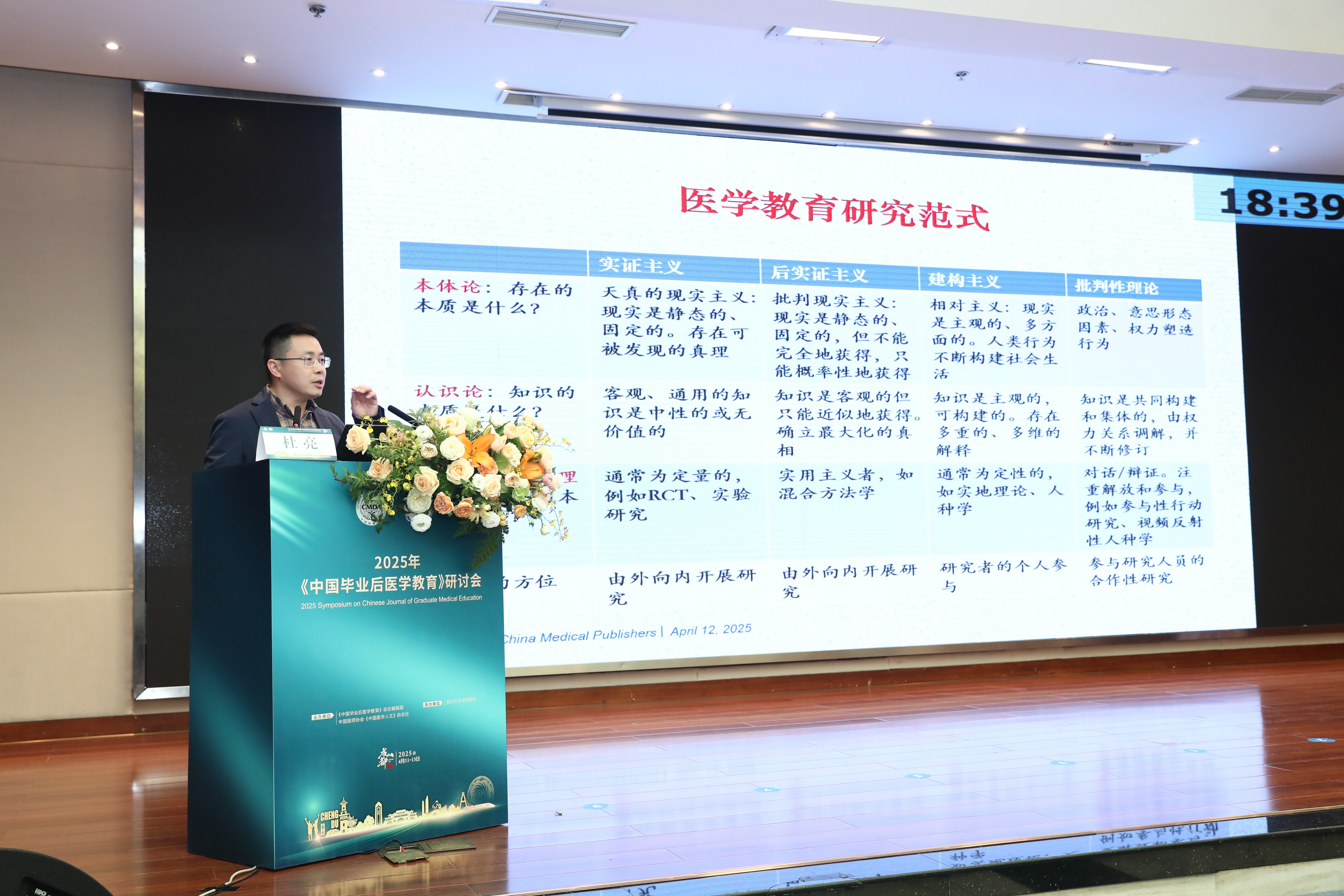 中国医科大学医学教育评价与改革研究院李鸿鹤副教授分享了国际毕业后医学教育研究热点及启示;《中华医学教育杂志》编辑部殷晓丽主任讲解了医学教育论文撰写技巧及常见问题分析;四川大学华西医院期刊社杜亮社长介绍了医学教育研究的相关内容,包括哲学范式、选题、综述、定性和定量研究方法等。