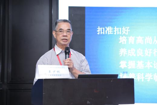 董家鸿院士作了《清华新医科卓越学者型医师培养模式》报告。董院士从培养背景、培养理念、培养模式、培养条件四方面详细介绍了清华大学临床医学院卓越学者型医师培养模式。他指出健康中国和全球健康新时代呼唤卓越医师。